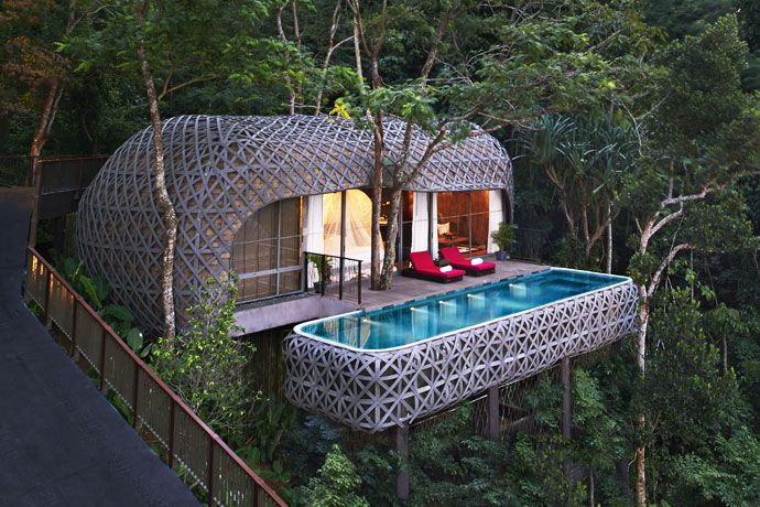 Several of the buildings were homes with sleeping hammocks, and the amenities of a tiny apartment, with the luxury of a small pool.